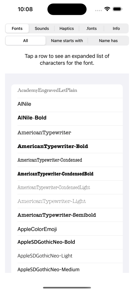 - .fonts: Access to base .font options, ensuring consistency with Apple’s user interface guidelines and facilitating intuitive user experiences.